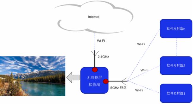 圖2表達(dá)的是軟件發(fā)送端連接本地局域網(wǎng),局域網(wǎng)通過無線投屏接收端的2.4GHz網(wǎng)絡(luò)連接接收端。所以發(fā)送端是通過局域網(wǎng)路由器,然后再連接接收端投屏。這樣的網(wǎng)絡(luò)拓?fù)浣Y(jié)構(gòu),出問題的概率非常高。具體如下: