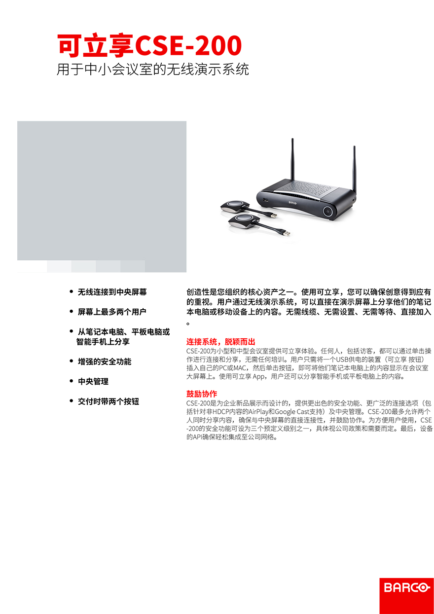 : ClickShare CSE-200+ 巴可4K超清無線分享協(xié)作系統(tǒng)