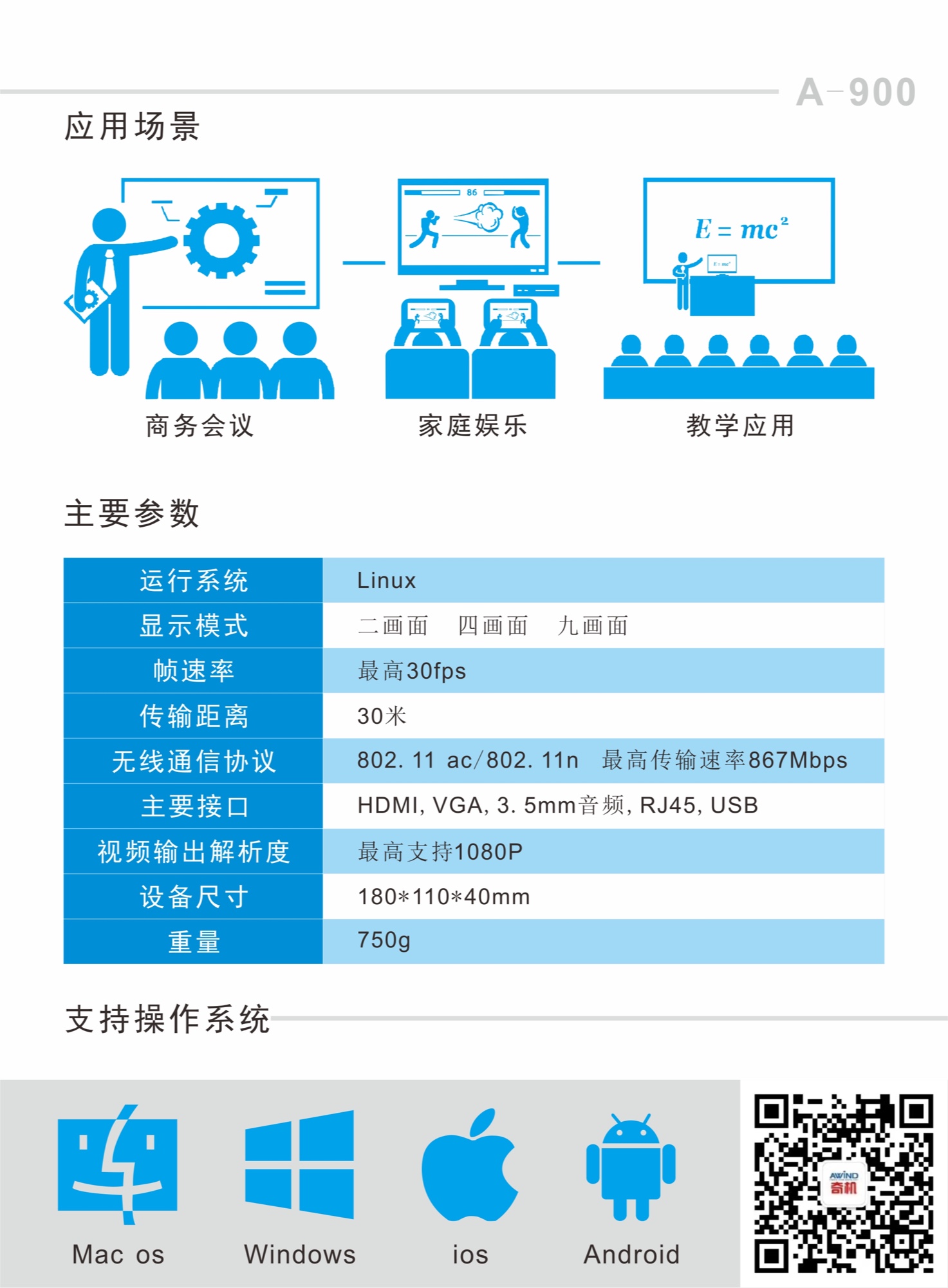 操作系統(tǒng) | Windows 7/8.1/10 32和64位 MAC OS X 10.10/10.11/10.12及以上 支持智能手機(jī)無線投屏 兼容airplay功能,推薦使用iOS9/iOS10/iOS11,OS X 10.10/10.11/10.12及以上 Android 5.0和更高版本(需安裝APP) |