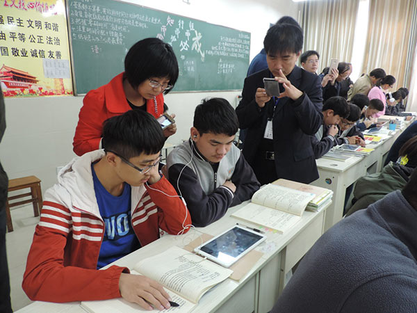 首先因為是視頻教學,觀看視頻的節奏快慢全由學生自己掌握,懂了的快進,沒懂的倒退反復觀看,還可停下來仔細思考或做筆記,甚至可以通過互聯網查詢相關資料,或是用聊天軟件向老師和同伴尋求幫助,不過這里有個很明顯的現象就是越是成績好的反而問題越多,甚至有些問題老師都要查資料才能回答的上來。